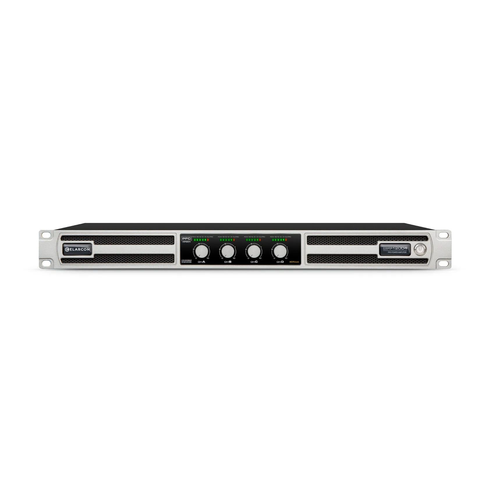 Elarcon DPF12004 - профессиональный 4-канальный усилитель класса D Elarcon DPF12004 с суммарной выходной мощностью до 4×3500 Вт при нагрузке 4 Ом, оснащённый активной системой охлаждения с четырьмя вентиляторами и комплексом защитных схем для надёжной работы под высокой нагрузкой. Он предназначен для использования в крупных концертных, прокатных и инсталляционных звуковых системах, обеспечивая мощное и стабильное усиление сигнала для многоканальных конфигураций акустики.